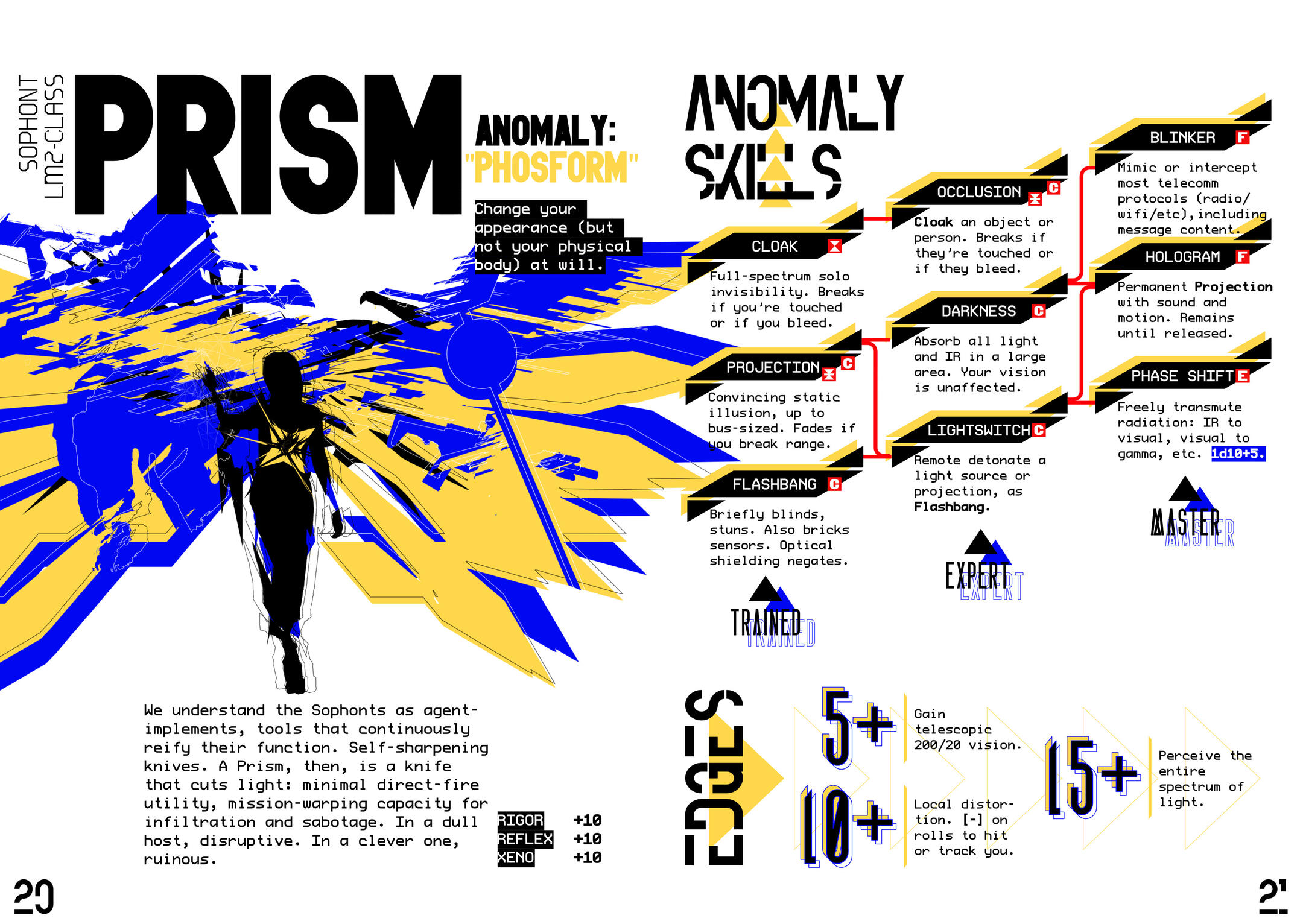 SOPHONT is my upcoming Panic Engine RPG about symbiote-infused black ops freaks trying to survive and find answers in the middle of a supranational, time-bending shadow war. I plan to release it in mid-2026. If you'd like to know more, you can follow the launch page on Backerkit here.